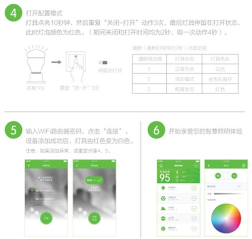 小編點(diǎn)評(píng):此款鴻雁的智能球泡燈,通過WIFI連接,APP遠(yuǎn)程控制,適用于安卓3.2和蘋果ISO8.0及以上的設(shè)備,隨時(shí)隨地遠(yuǎn)程控制,且一臺(tái)路由器可連接多只球泡燈,方便又簡(jiǎn)潔。不僅如此,APP人性化設(shè)計(jì),帶來完美體驗(yàn)支持,通過APP的遠(yuǎn)程操作可以體驗(yàn)智能球泡燈的多種模式,控制燈光開關(guān),調(diào)節(jié)亮度、色彩,具有炫彩和定時(shí)模式體驗(yàn)多種生活樂趣!簡(jiǎn)單的操作界面和APP使用說明書簡(jiǎn)單明了,對(duì)于一些不太習(xí)慣使用APP的人也一樣適用操作方便。