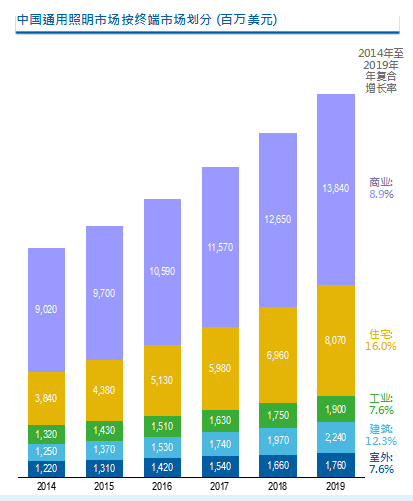 資料來源:technavio報告《中國通用照明市場2015年-2019年》。
