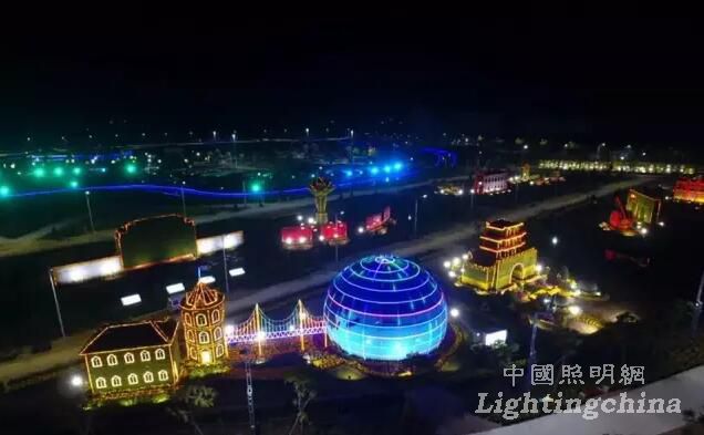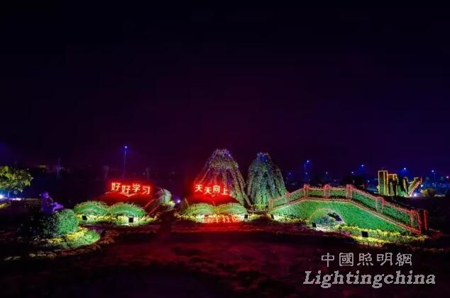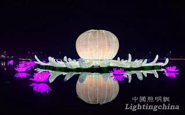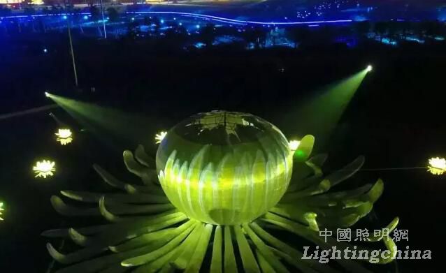 “偉大轉折”:主體是高6米的燈墻及菊花高鐵、高8米的燈飾奧運火炬;